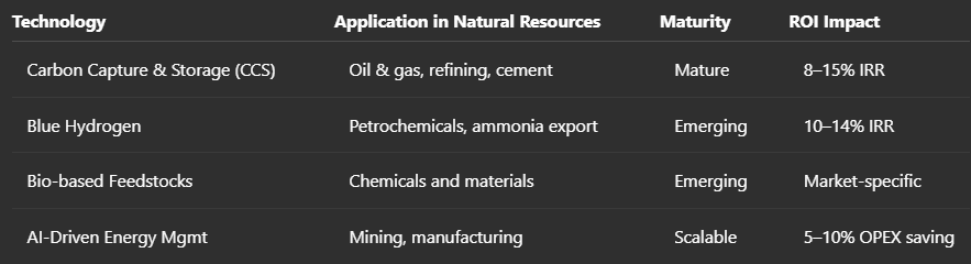Prioritizing investments in low-carbon technologies (e.g., CCS, hydrogen, biofuels).